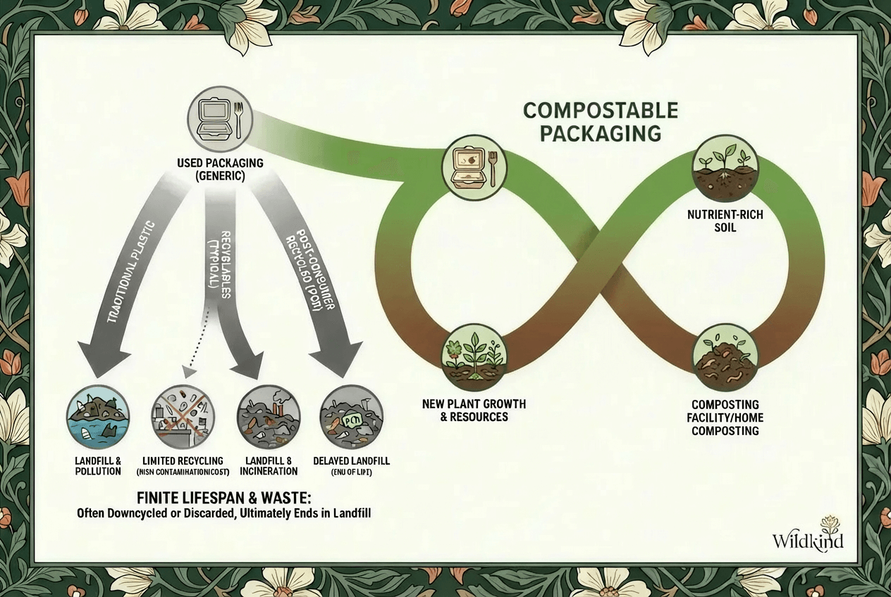 Compostable packaging operates on a fundamentally different logic.